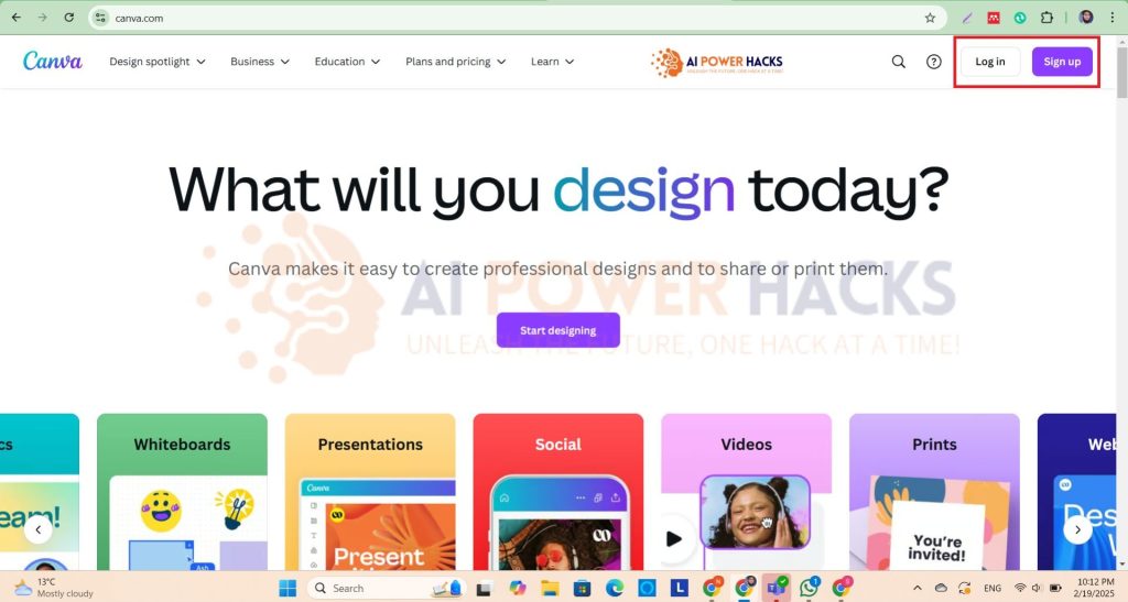 To create an account on Canva, go to canva.com and click on the Sign Up button in the upper right corner, as shown in the attached screenshot. After clicking the Sign Up button, a form will appear on your screen. You will be given five different ways to create an account on Canva, including signing up with Google, Facebook, email, or your organizational email.